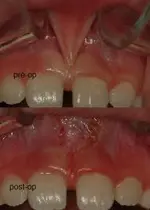If your frenum is the right size and properly positioned on your gum line above your two front teeth, it serves the simple purpose of attaching your gums to your lip, and all is well. Your frenum is supposed to move upward when your baby teeth come in to make room. However, if the frenum is too large, attached in the wrong spot or fails to move down like it should, it can cause problems. An incorrectly placed frenum can exert a pull or tension that prevents your front teeth from coming together the way they should. What makes this even more of an issue is the fact that braces can’t fix it! With the frenum in the way, your front teeth will never get to meet one another.
